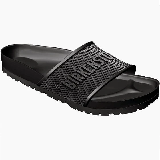 The BIRKENSTOCK Barbados is a sporty slide design with a hexagon pattern and logo lettering. Modeled on the cork sandal, this sandal is made from one piece of light, flexible and waterproof molded EVA.