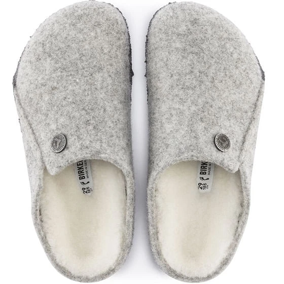 The legendary two-strap design from BIRKENSTOCK – the Arizona, in a comfy wool version for kids. Iconic style complemented with the signature comfort of the BIRKENSTOCK footbed. This style is especially cozy with a wool lining, perfect for chilly days and nights. The adjustable straps provide a perfect fit for growing kids. The upper is made from soft, cozy wool felt and the footbed is fully lined in fluffy shearling wool.