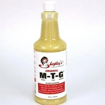Original M-T-G is a time-tested, easy to use solution for both skin healing and hair growth. Original M-T-G provides quick and complete relief for numerous skin problems. It’s unique formula calms skin issues while conditioning the skin and hair around teh affected area resulting in healthy skin and beautiful hair. Original M-T-G is also an excellent mane and tail conditioner and when applied weekly, many users report growth of up to 3″ a month. “Recommended by veterinarians, trainers, farriers & friends worldwide.” Good to treat fungus, rain rot, girth itch, scratches, sweet itch, tail rubbing, dry skin, bug bites, mane & tail detangling, mane & tail growth and tail conditioning. Contains: mineral oil, sulfur, zinc stearate, glycerin, cade oil (rectified).