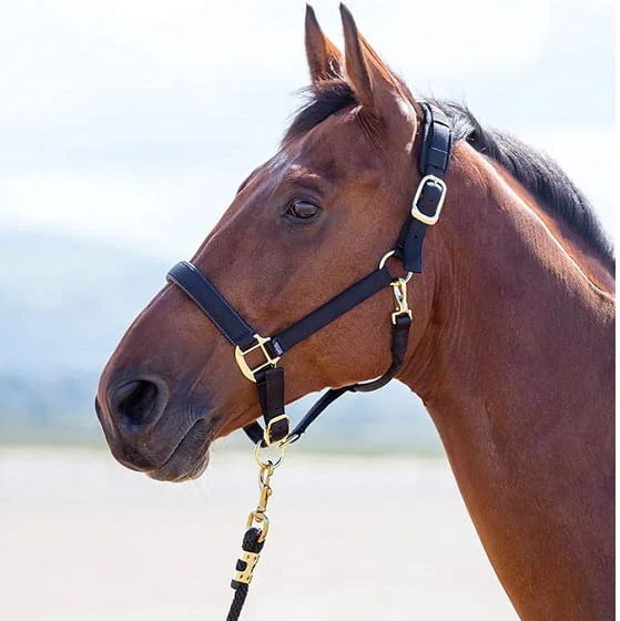 – Quality nylon halter with contrast padding, adjustable headpiece with removable padding, breakaway attachment, adjustable nosepiece and clip on throatlash.